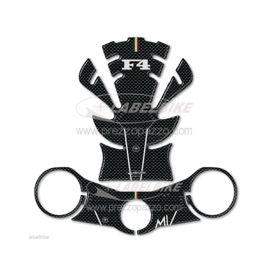 KIT 3D RESIN ADHESIVES Compatible pour MOTOCYCLE "F4 MV AGUSTA" JUSQU'EN 2009 - plaque de protection exclusive + plaque de direction - Labelbike - Protège des chocs et des rayures Résiste aux intempéries et aux rayons UV FABRIQUÉ EN ITALIE