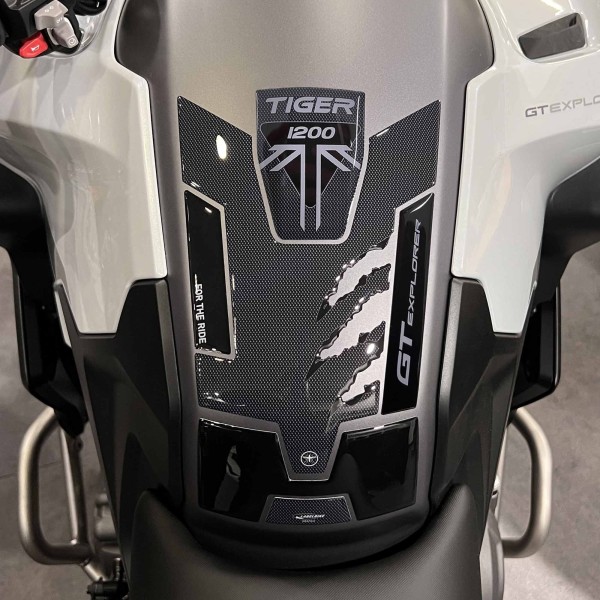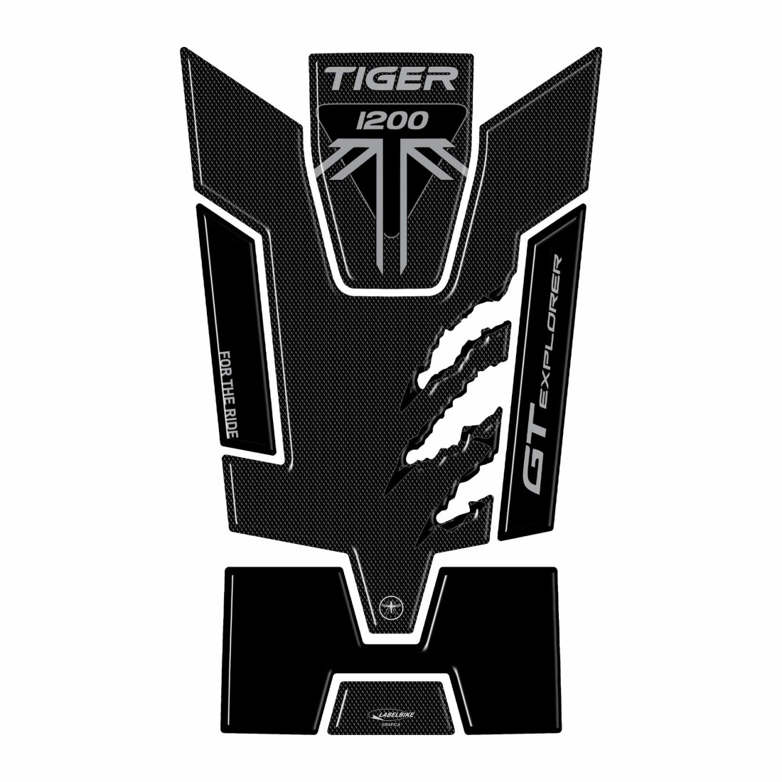 Lot de 2 protections de réservoir en résine 3D adhésives, supérieure et inférieure pour le réservoir de la moto Triumph Tiger 1200. GT Explorer.