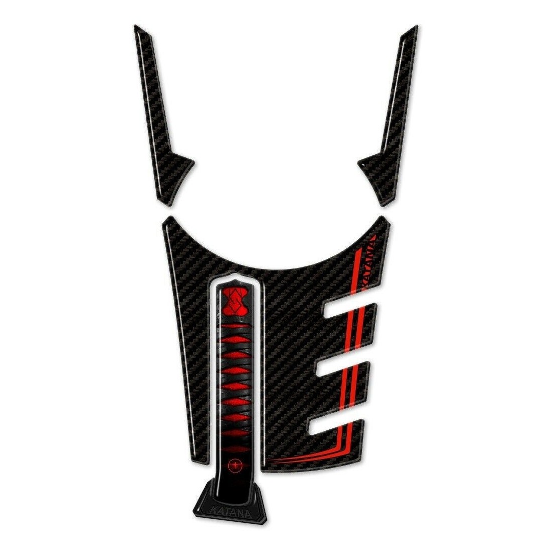 Protecteurs 3D adhésifs compatibles avec motos Suzuki Katana (2019-2023). Adhésif en résine pour protéger et décorer le réservoir de votre Katana. Protecteur de réservoir Made in Italy Exclusive Labelbike, surface brillante, avec base en carbone et finition rouge.