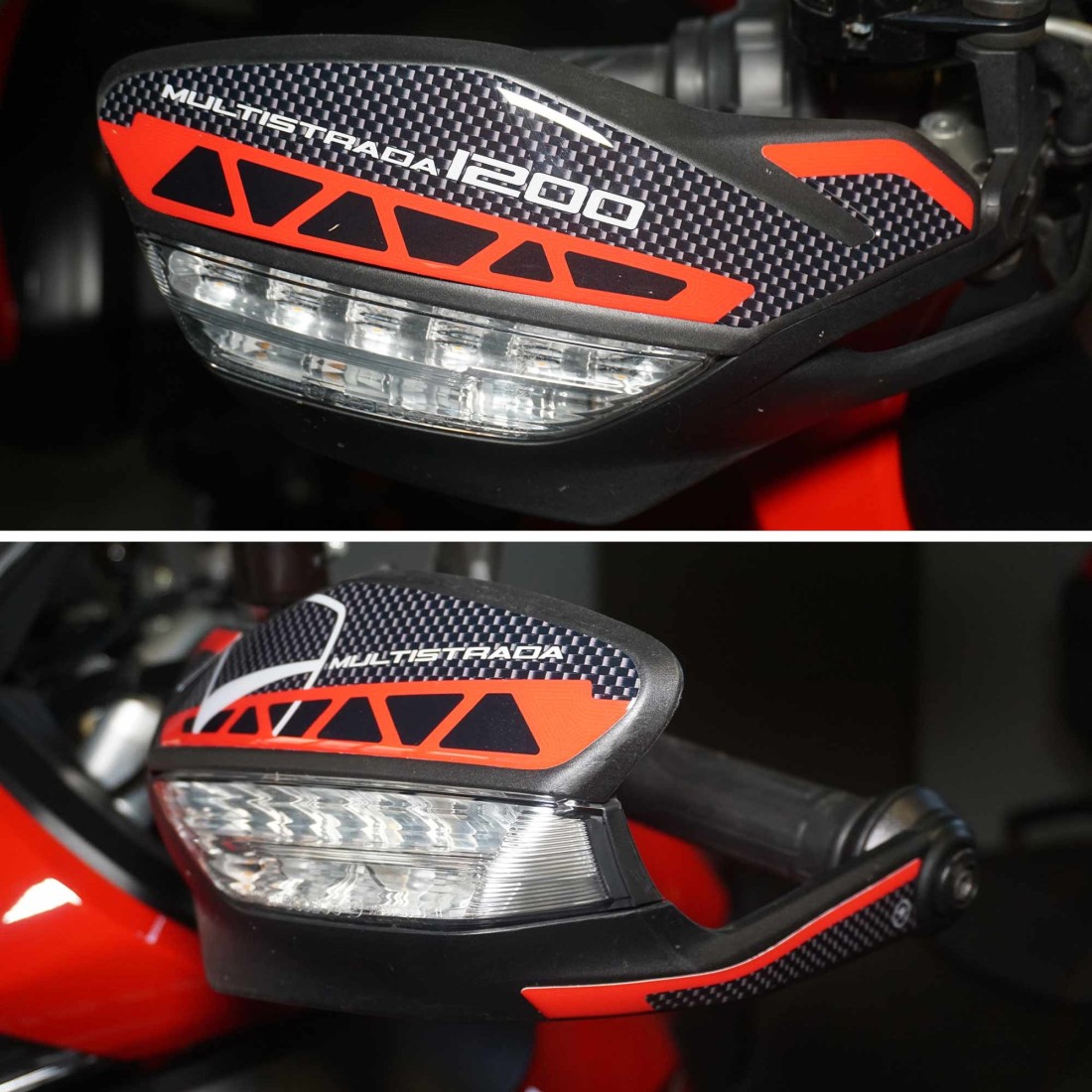 Ils décorent et réparent des bosses et des rayures les protège-mains sur votre Multistrada 1200 de 2015 à 2018 et version Enduro, ils résistent au lavage, aux intempéries et aux UV.