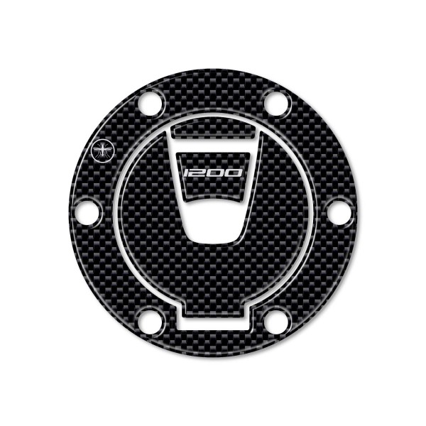L'autocollant pour bouchon de réservoir que vous êtes sur le point d'acheter est fabriqué en Simil Carbon avec un lettrage gris clair comme sur la photo.