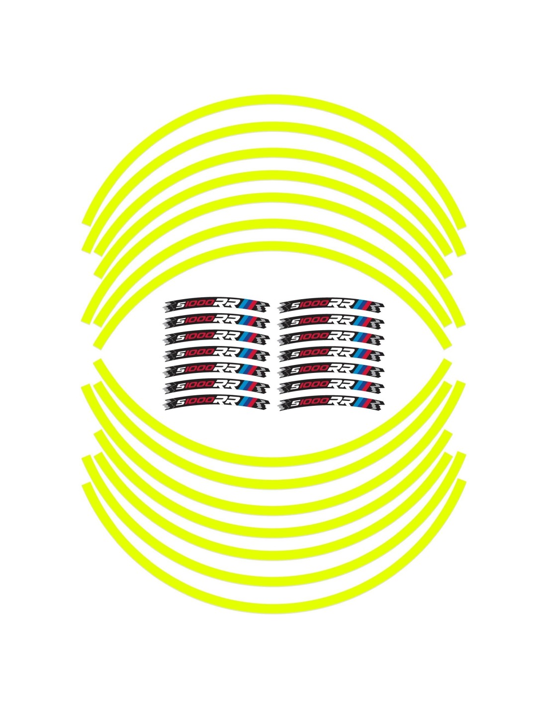 - KIT Stickers / Strickers bandes de roues 17" pour moto BMW S1000 RR - Jaune fluo