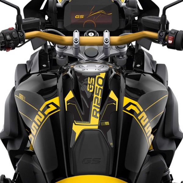 Protections adhésives 3D compatibles avec Moto Bmw R 1250 GS - Edition 40 ans GS (2021-2022). Résine adhésive pour protéger et décorer le réservoir de votre GS 40e anniversaire. Graphique autocollant moto enduit de résine Effet 3Dsurface brillante, pour les modèles de réservoir de moto "40 ans" à partir de 2021 .