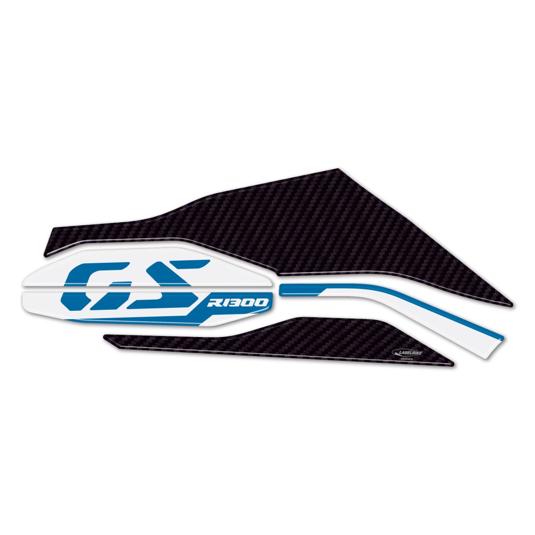 Jeu d'autocollants (pour Trophy en bleu, en carbone pour Triple Black et en bleu cyan pour Light White) en résine 3D, compatibles avec l'espace passager sous le pied de la moto Bmw R1300GS.