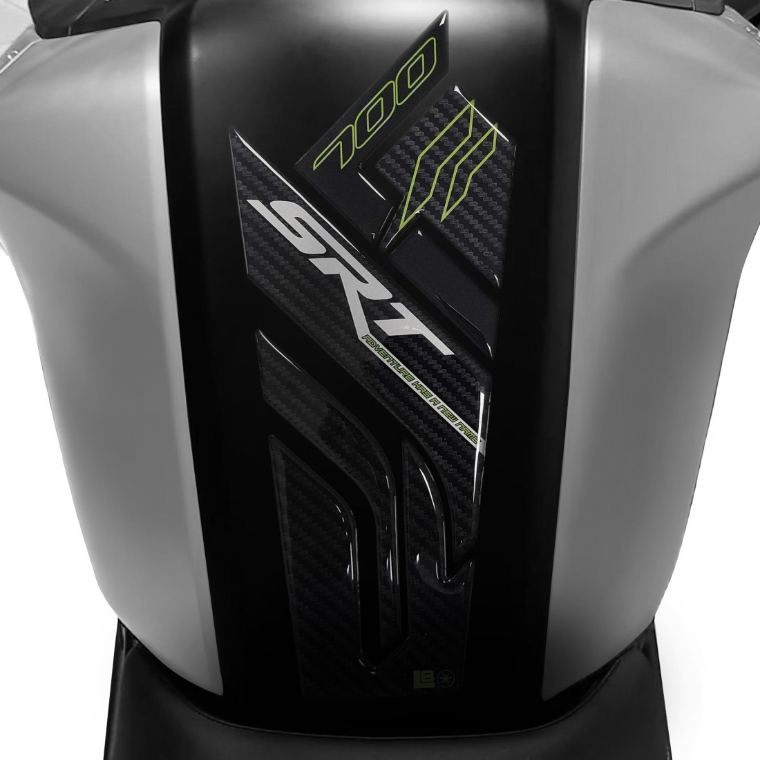 Protections adhésives résinées pour la zone centrale du réservoir de la moto QJ Motor SRT 700. Autocollants Exclusif - Labelbike MADE IN ITALY en résine avec effet 3D.