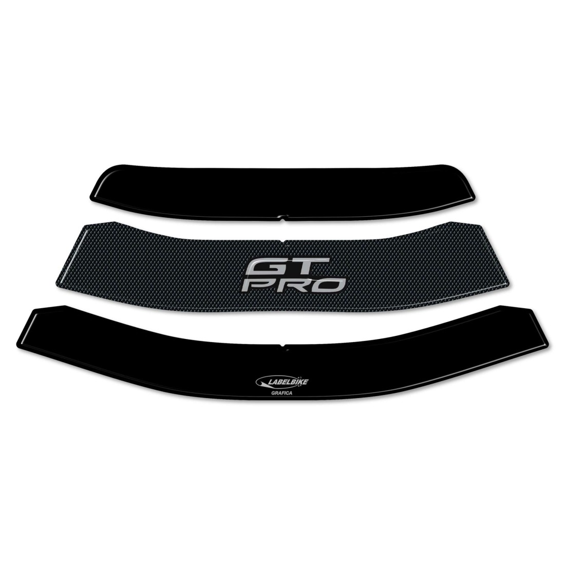 Protège-réservoir fabriqué en Italie, exclusif à Labelbike, réalisé avec des bandes de résine avecCarbon Look et noir et lettrage LETTRAGE GT PRO.