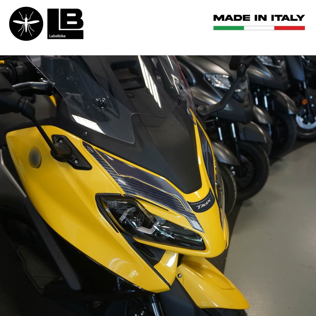 Les autocollants en résine protègent et décorent votre Tmax 2022-23. Graphiques avec effet Carbone (look carbone), antidérapant similaire et double détails 3D en couleur Jaune.