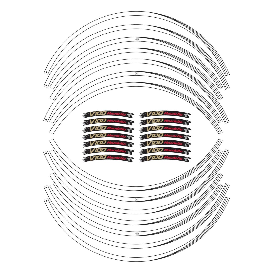 Autocollants pour les deux roues de la moto, MADE IN ITALY. Graphiques de base en blanc, noir ou rouge avec détails et lettrage du drapeau tricolore italien. Mandello V100. Ils décorent et améliorent l'esthétique de votre Moto Guzzi V100Ils sont résistants au lavage, aux intempéries et aux rayons UV.
