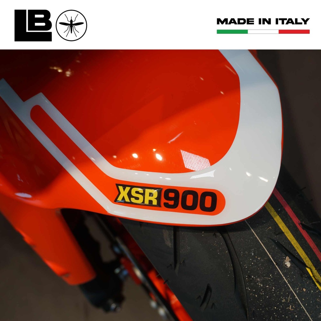 Protections d'ailes adhésives moto en résine avec effet 3D. Protections adhésives en résine avec graphismes dédiés à la couleur Rouge Légende 2022 - 2025 de la Yamaha XSR 900.