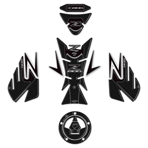 Protections adhésives en résine pour protéger et décorer le réservoir de votre moto Kawasaki Z800. Stickers 3D en gel de résine Exclusivité Labelbike. Autocollants pour réservoir MADE IN ITALY en résine avec effet 3D. Compatible avec tous les Z 800. Kit de protection complet comprenant :