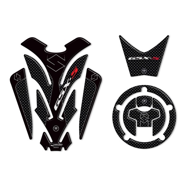 Kit de 3 autocollants 3D en résine pour protection de réservoir moto Suzuki GSX-S 750 2017-2020 _ Simil carbone et noir