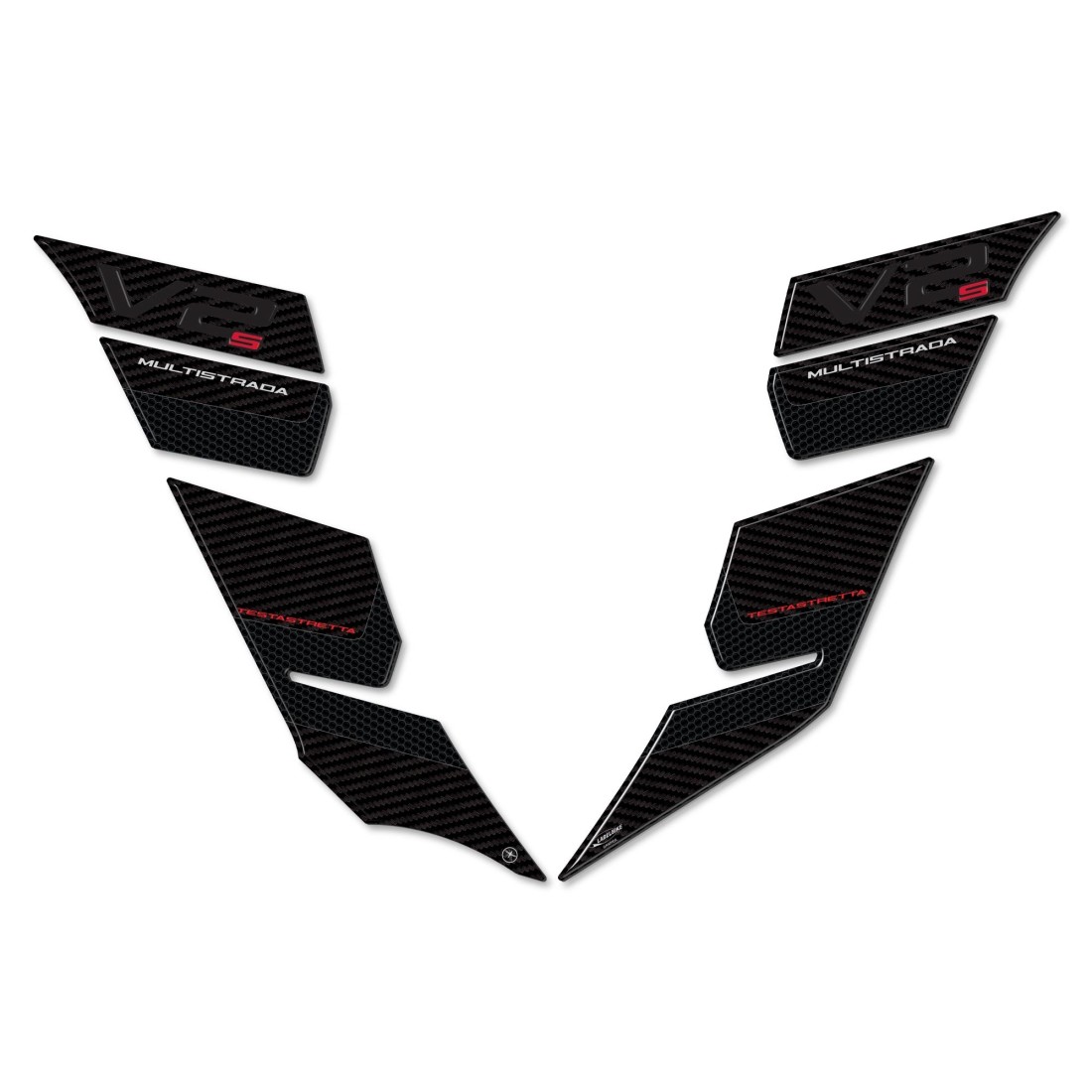Autocollants moto MADE IN ITALY en résine avec effet 3D. Graphisme en Carbon Look (effet carbone) avec lettrage V2s Multistrada Testastretta.