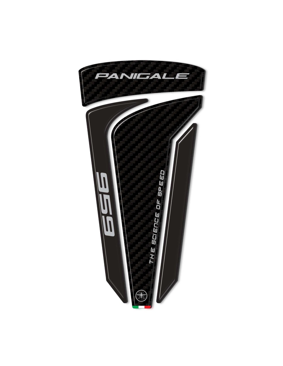 Autocollant de protection de réservoir de moto. MADE IN ITALY Réalisé en résine avec effet 3D. Graphique en Carbon Look (effet carbone) avec lettrage gris 959 Panigale The Science of Speed.