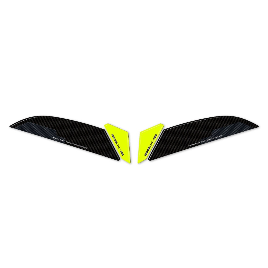 Protections adhésives en résine pour le réservoir latéral de la moto Suzuki GSX-S 950 2021-23. Deux autocollants en résine gel 3D Exclusif - Labelbike®. Autocollants pour le côté du réservoir MADE IN ITALY en résine avec effet 3D. Graphiques en Carbon Look et Noir ou Carbon Look et Giallo FLUO avec lettrage GSX-S Naked Aggression.