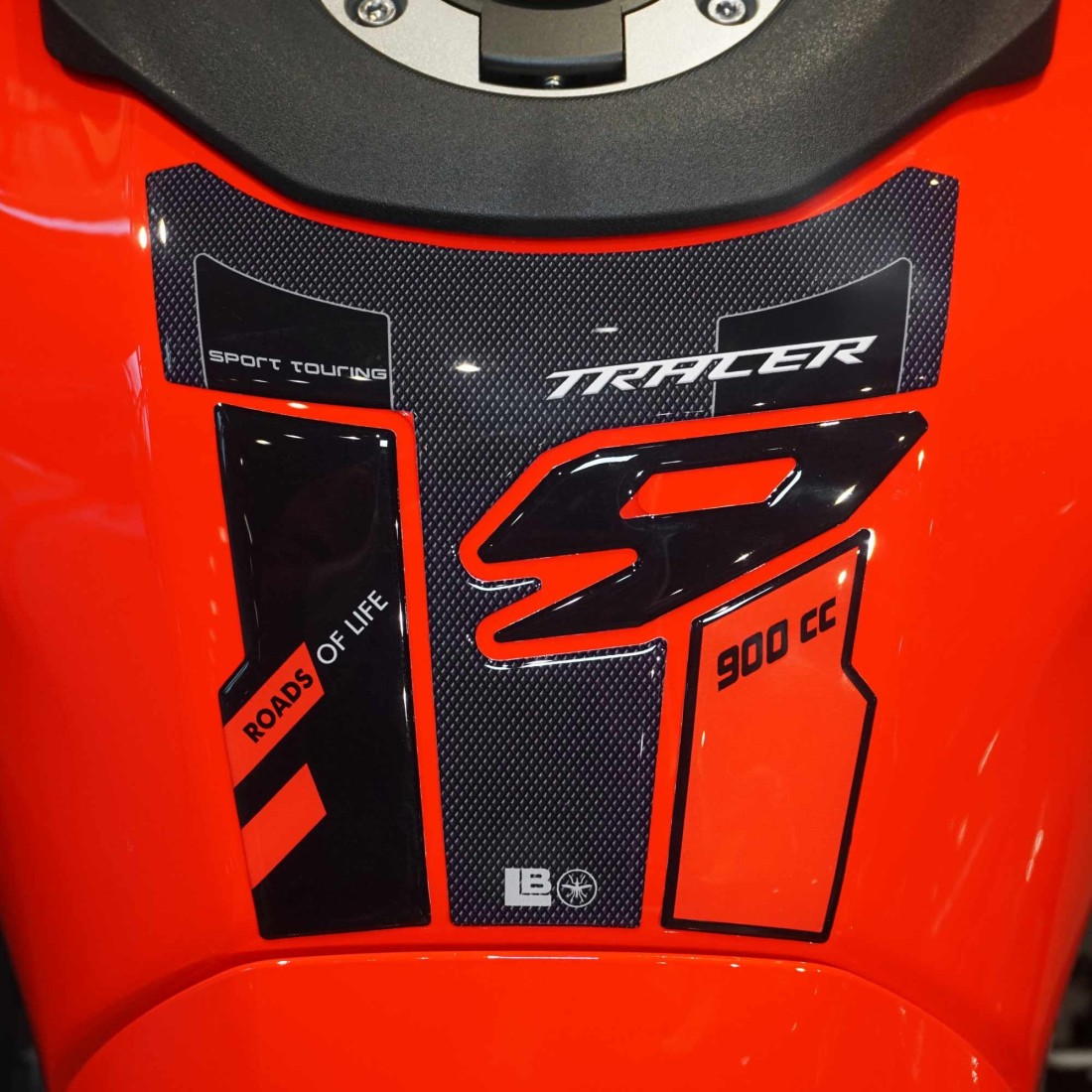 Protection adhésive en résine pour protéger et décorer le réservoir de votre moto, compatible avec la Yamaha Tracer 9 à partir de 2025. Adhésif résine gel 3D Exclusif - Labelbike®. Adhésif pour réservoir MADE IN ITALY Réalisé en résine avec effet 3D. Protège-réservoir 3D avec graphisme en Gris ou Rouge avec base et lettrage Carbon Look. Tracer 9 Sport Touring Roads of Life.