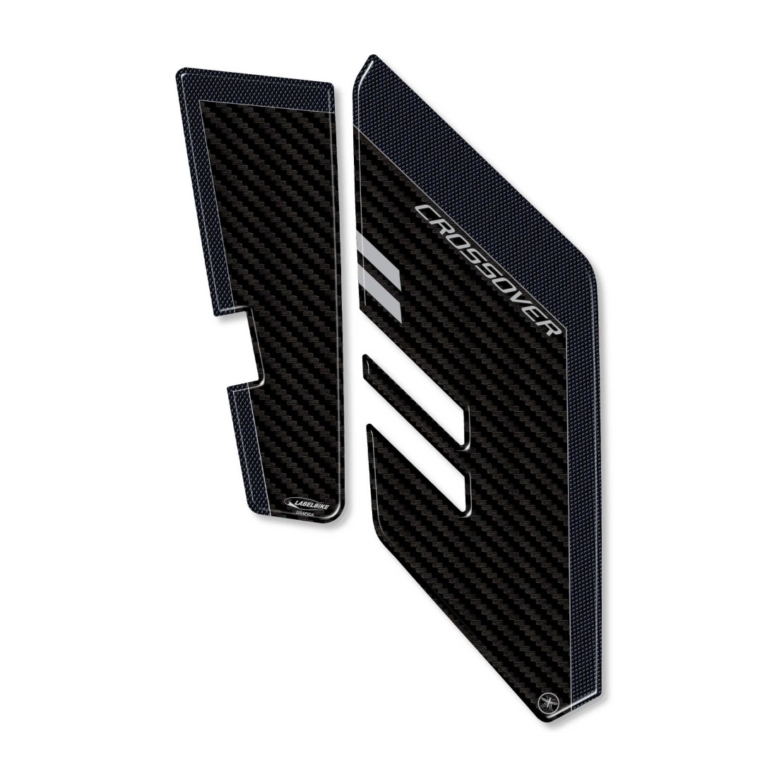 Adhesive protection 3D compatible with Honda X-Adv 2021-2024. Resin adhesive to protect and decorate the side flap of your X Adv 750 2021 - 2024. XAdv stickers 3D effect, glossy surface, for 2021-2024 X-Adv side door, made of resin withCarbon Look base(carbon look) and Anti-slip Simil finish with Crossover lettering.