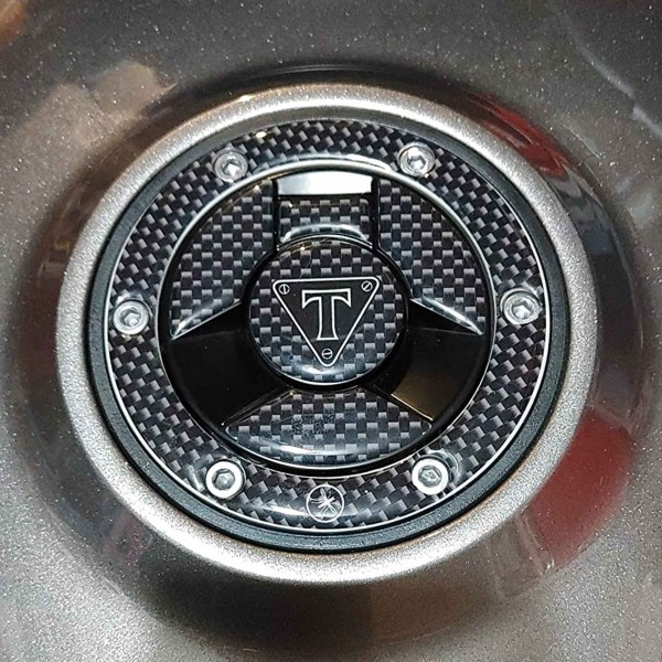 3D fuel cap protector compatible with Triumph motorbikes 2016 to 2023. Resin adhesive to protect and decorate the filler cap of your bike. Adhesive protection made of resin with carbon-like effect and Triumph symbol.