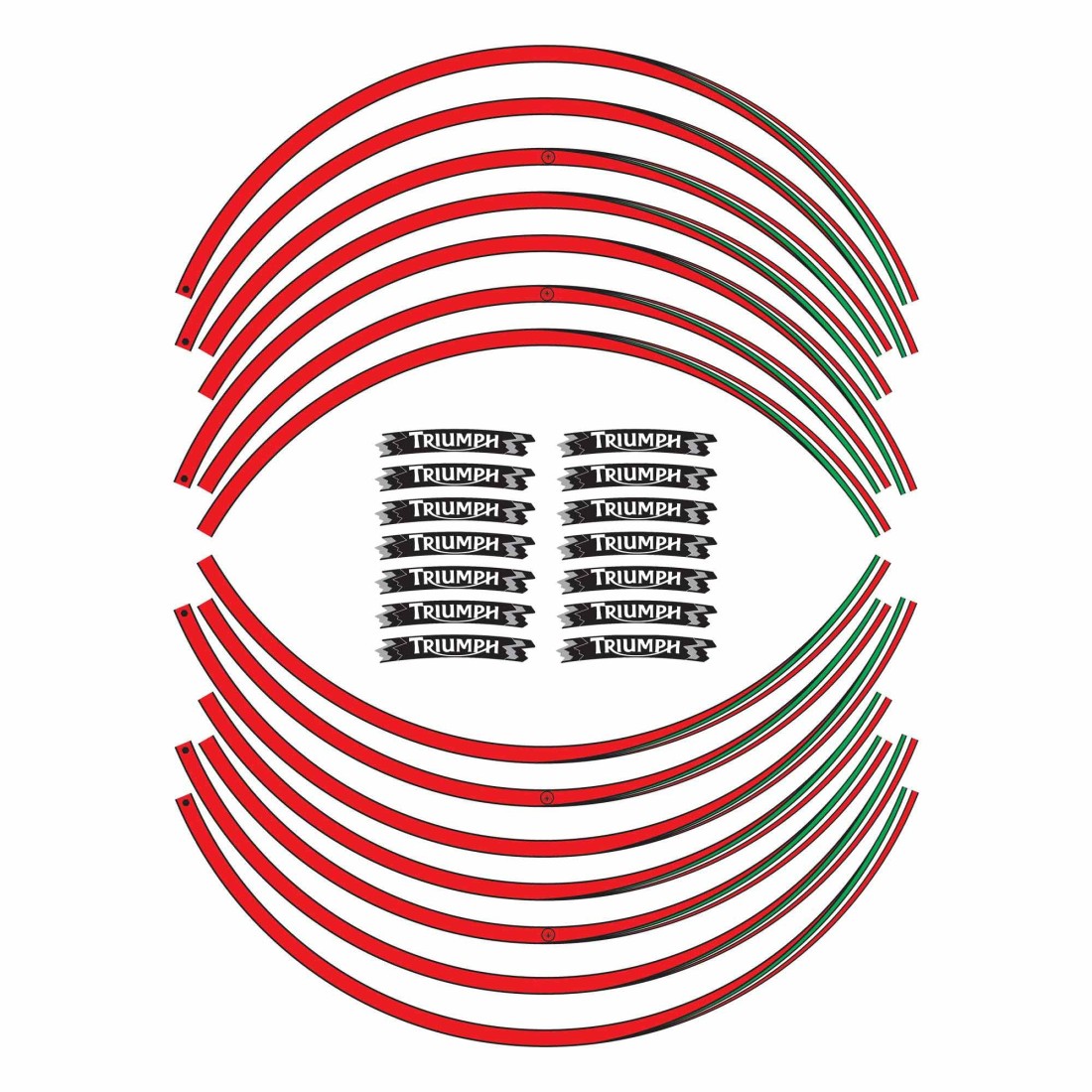 Set of adhesive strips for 17" wheel rims compatible with motorbikes Triumph Speed Triple | Street Triple | Trident and all Triumph motorcycles with 17" wheels. Pre-bent motorbike wheel rim edge stickers ideal to decorate and make your Triumph bike unique!