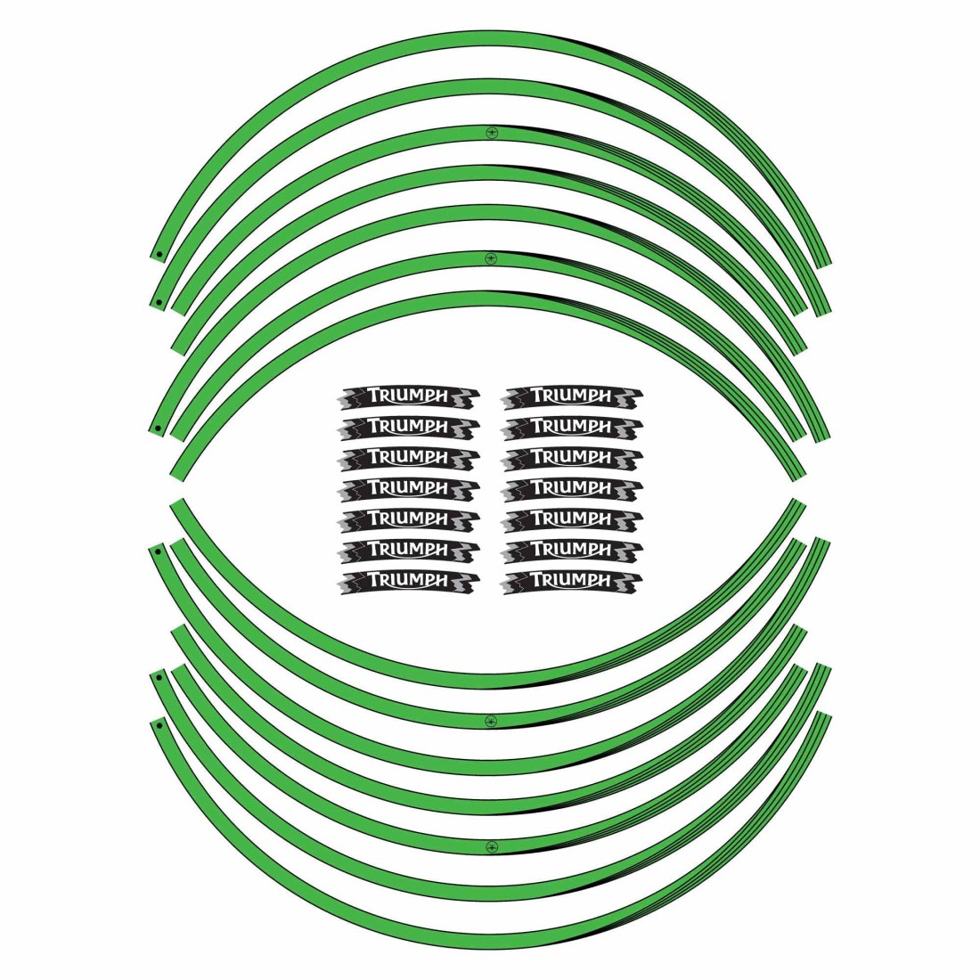 Set of adhesive strips for 17" wheel rims compatible with motorbikes Triumph Speed Triple | Street Triple | Trident and all Triumph motorcycles with 17" wheels. Pre-bent motorbike wheel rim edge stickers ideal to decorate and make your Triumph bike unique!
