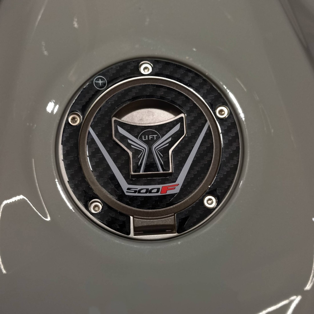 Motorbike sticker made of resin with 3D effect. Resin protective sticker with carbon effect graphics and writing CB500F.