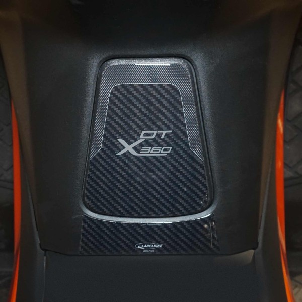 Graphics with base in Simil Antislip and carbon effect and DTX 360 grey lettering. Resin 3D effect stickers, Exclusive Labelbike® MADE IN ITALY.
