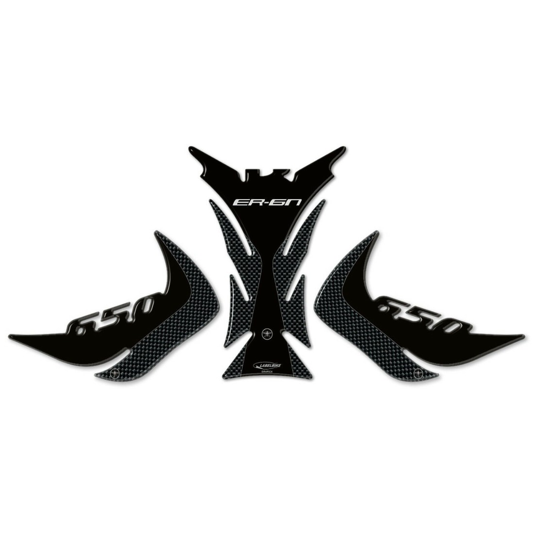 3D RESIN TANK PROTECTIONS compatible with KAWASAKI ER-6N from 2012 Tank Guard + SIDE PROTECTIONS KIT in Carbon Look and Black Exclusive - Labelbike ER-6N WRITING in Grey 650 in High Relief COLOURS Similar to Carbon and Black Protects your motorbike tank from bumps and scratches Resistant to weather and UV rays MADE IN ITALY