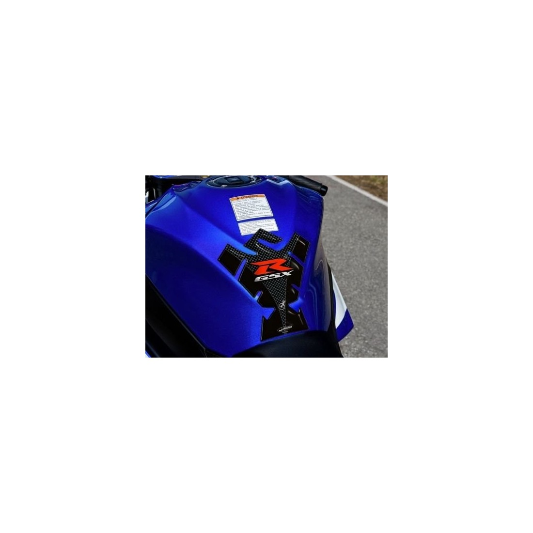 Tank protector in Simil Carbon with GSX White and R Red lettering. EXCLUSIVE LABELBIKE Resin Sticker