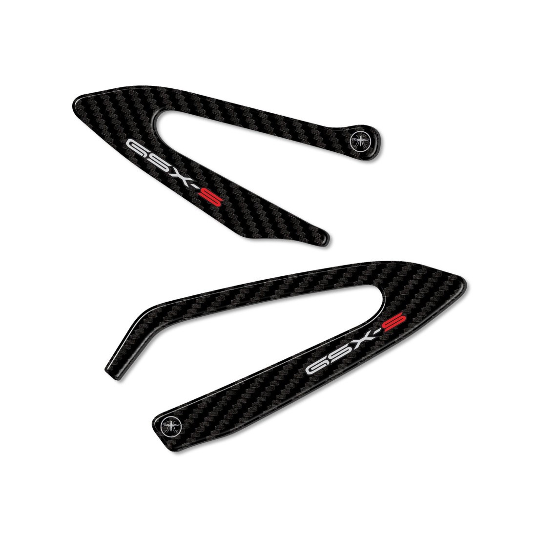 Resin heel protector stickers with 3D effect. Pair for left and right side of adhesive resin protectors with Carbon Look graphics (carbon effect) and GSX-S lettering.