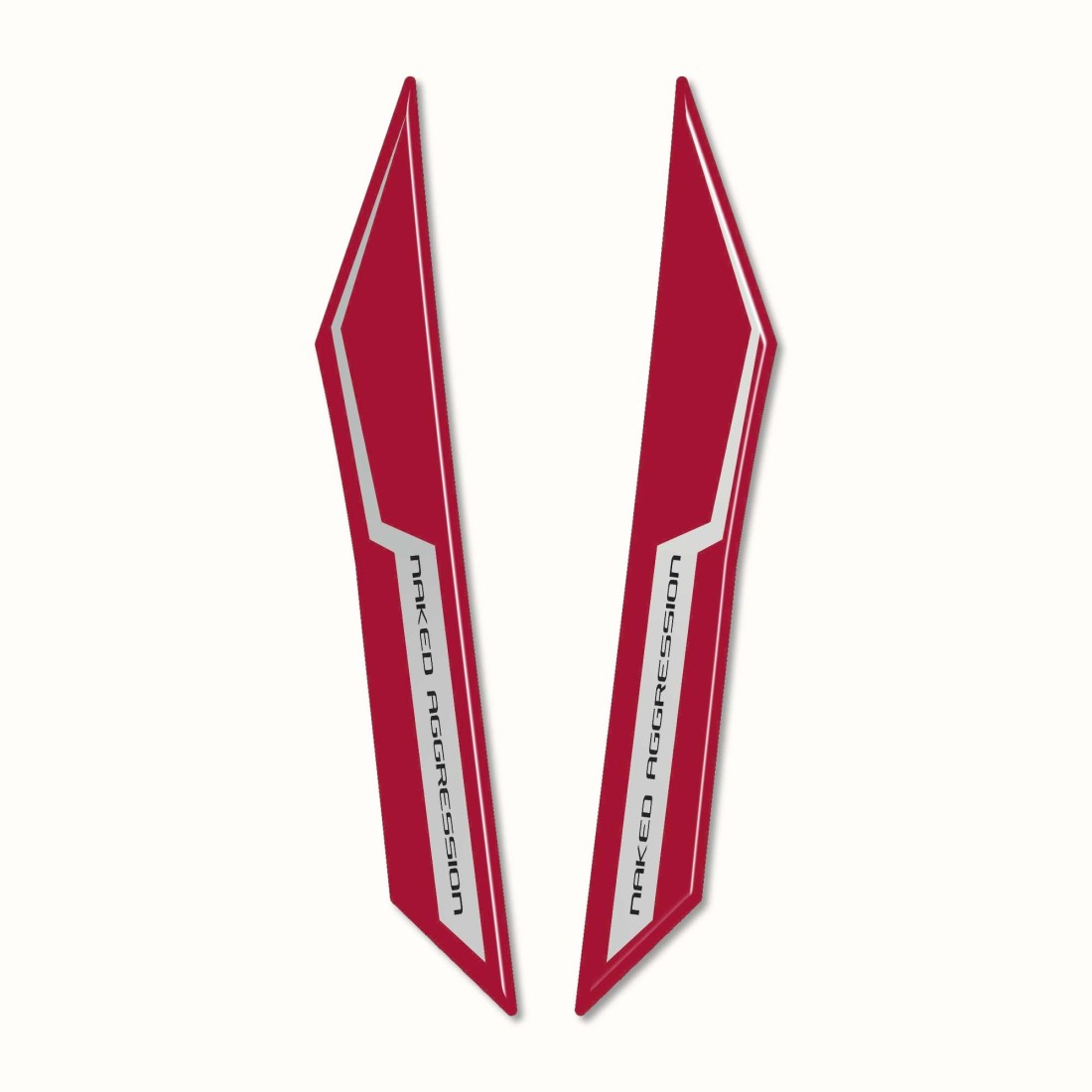 Adhesive 3D protectors compatible with Suzuki GSX-S1000 from 2024. Resin motorbike sticker ideal for protecting and decorating the front mudguard of your Suzuki GSX S 1000. Stickers in white or red with 3D effectglossy surface and Naked Aggression lettering.