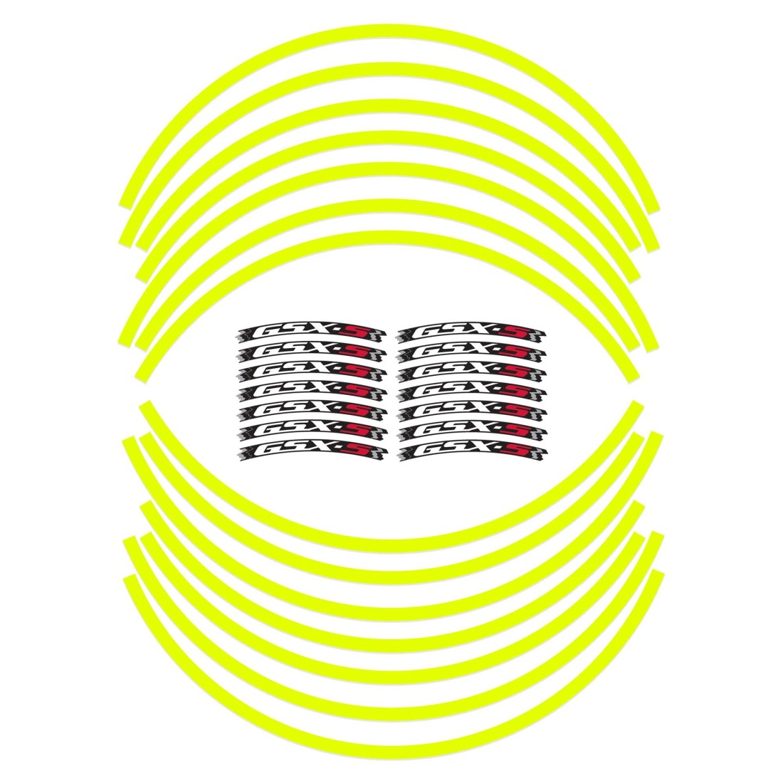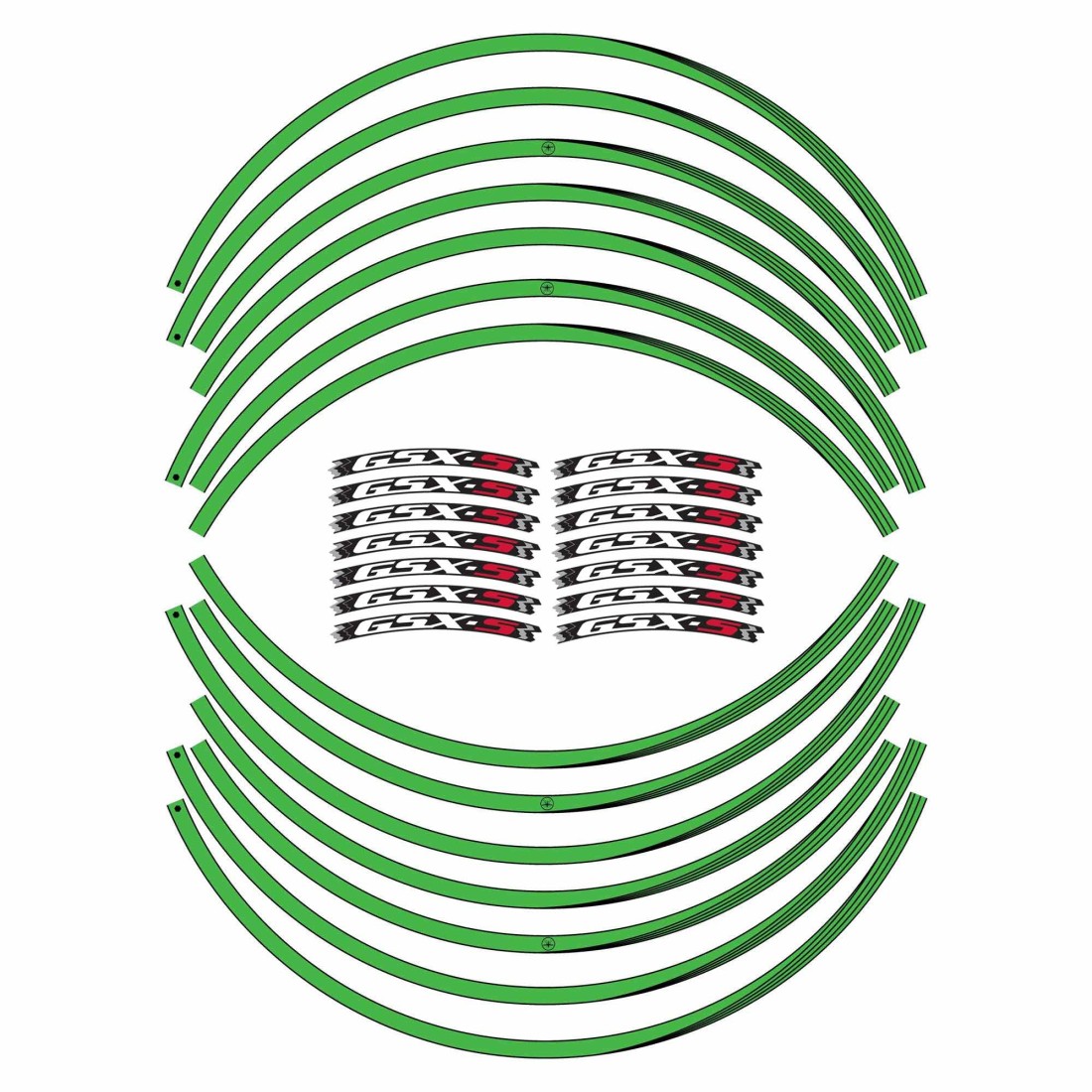 Sticker kit for both motorbike wheels, various colours available (White, Black, Green, Red) compatible with Suzuki GSX-S 750 and GSX-S 1000 2016-2020 wheel profile
