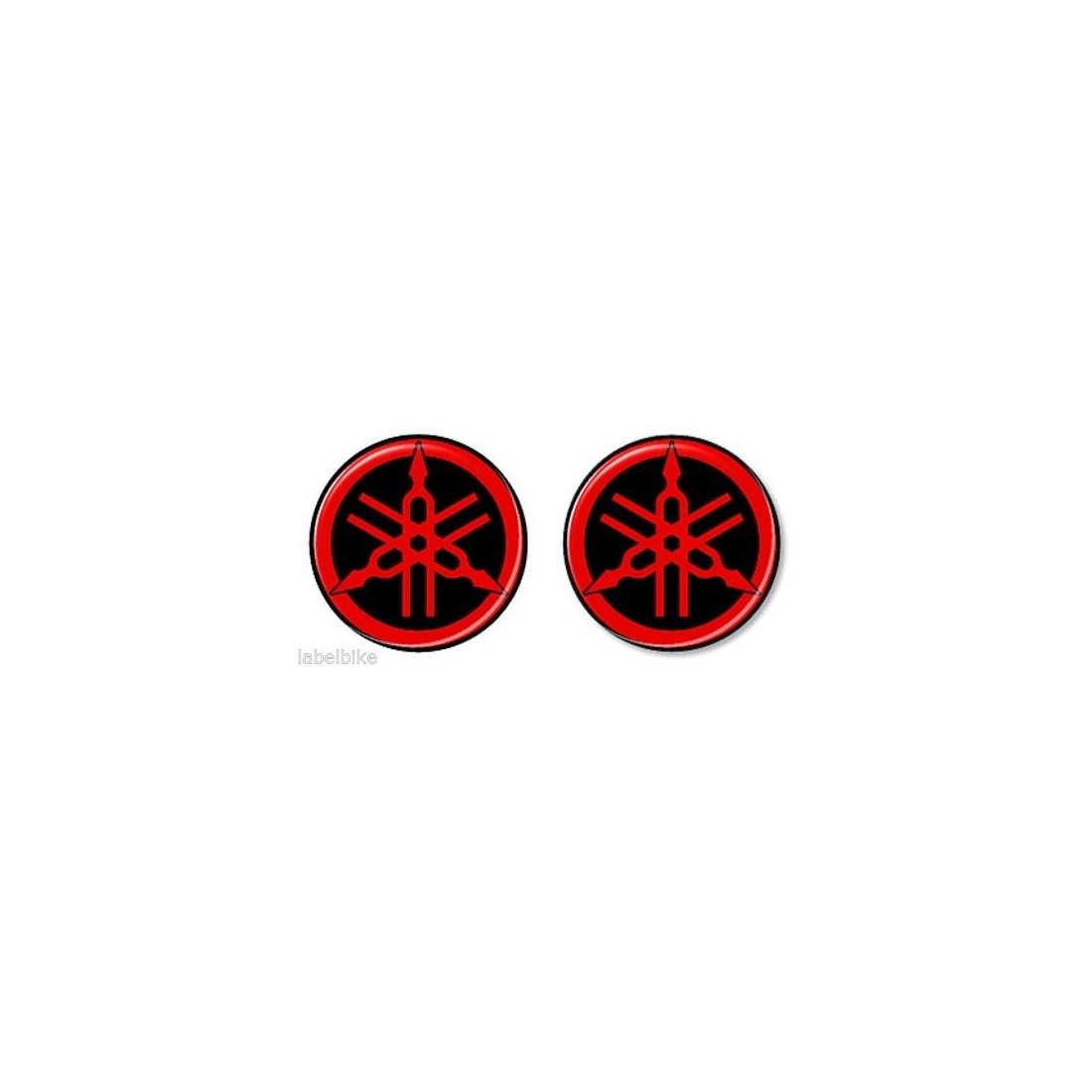 Pair of 50 mm Round 3D Resin Stickers - Yamaha Diapason Logos Black Red to 2025