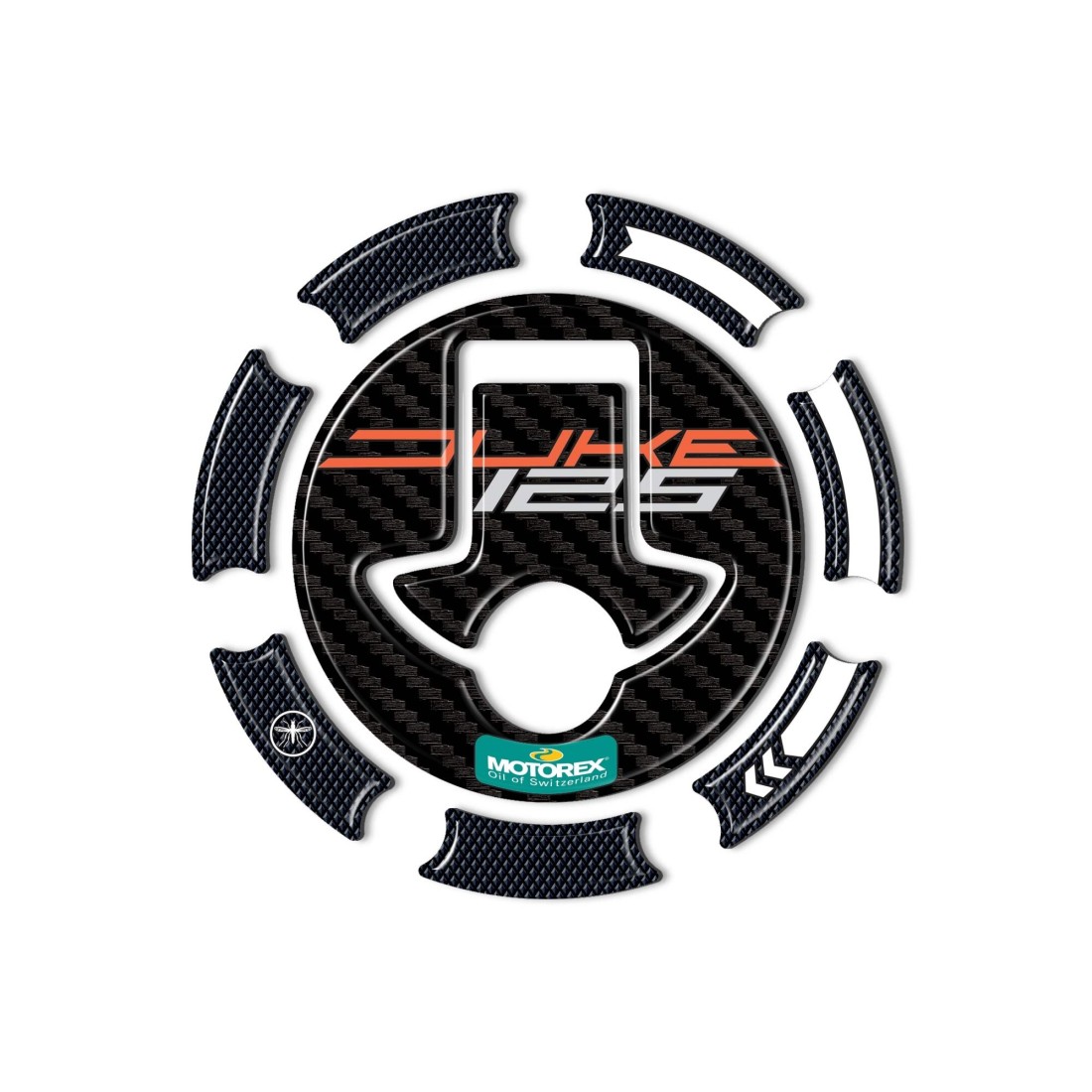 Adhesive 3D protection sticker compatible with KTM Duke 125 2013-2016 petrol cap. Resin adhesive to protect and decorate the fuel cap of your KTM 125 Duke. Adhesive for Duke 3D effect3D effect sticker, glossy surface, for 2013-2016 fuel cap, made of resin withCarbon Look base(carbon look) and Anti-slip Simil finish with Duke 125 writing.