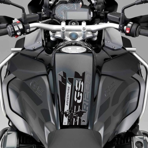 3D adhesive protectors compatible with motorbike Bmw R 1200 GS Adventure (2013-2018). Resin adhesive to protect and decorate the tank of your GS Adventure. Adhesive resin-coated motorbike graphics metallic effect for motorbike tank.