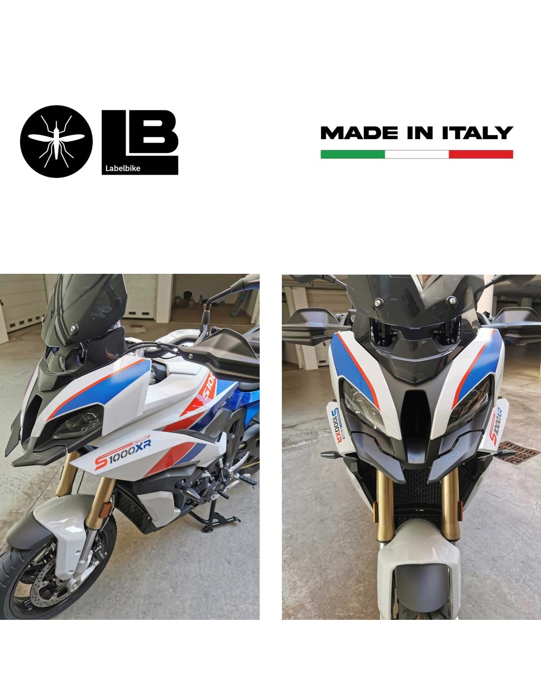 Two motorcycle-compatible decals BMW S 1000 XR SPORT. Ideal for 2020-2021 model. S1000XR lettering in black, blue and red. Stickers MADE IN ITALY Exclusive Labelbike.