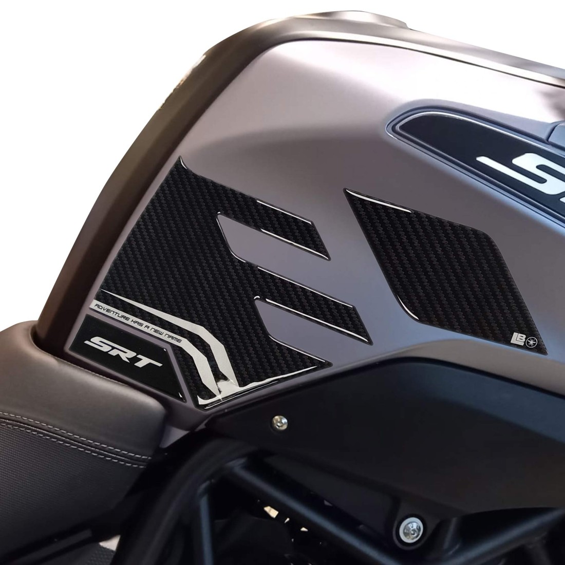 Resin adhesive protectors for QJ Motor SRT 700 motorbike tank side area. Stickers Exclusive - Labelbike® MADE IN ITALY made of resin with 3D effect.