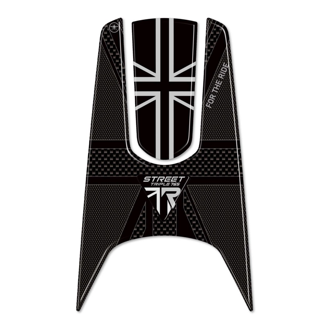 Adhesive 3D protection sticker compatible with Triumph Street Triple 765 R 2023 - 2024 motorbike. Resin adhesive to protect and decorate the fuel tank of your Street Triple R. Resin bonded motorbike graphics 3D effectGlossy surface, for motorbike tank.