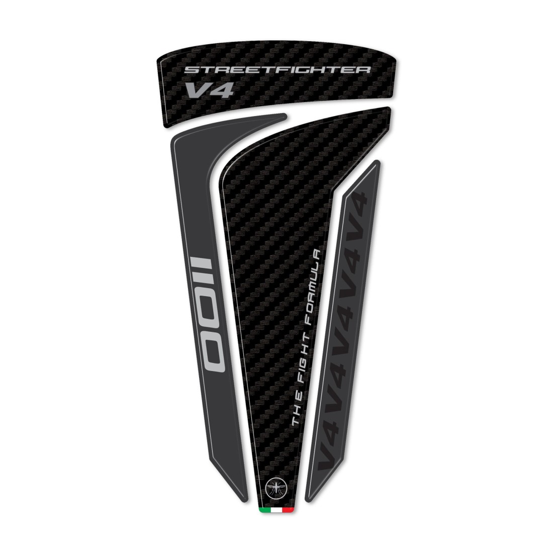 Motorbike tank protector sticker MADE IN ITALY made in resin with 3D effect. Carbon Look graphics and V4 1100 Streetfighter lettering.