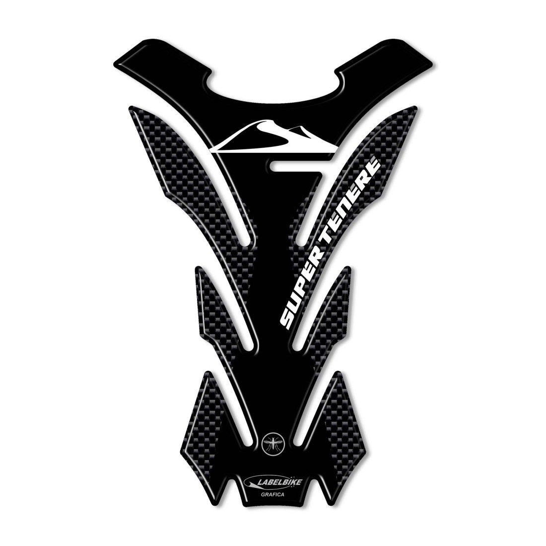 Resin adhesive protector to protect and decorate the tank of your motorbike Yamaha Super Tenere. Exclusive Labelbike® 3D gel resin adhesive. Tank sticker MADE IN ITALY made of resin with 3D effect. 3D tank protector with Carbon Look base and black Super Tenere writing.