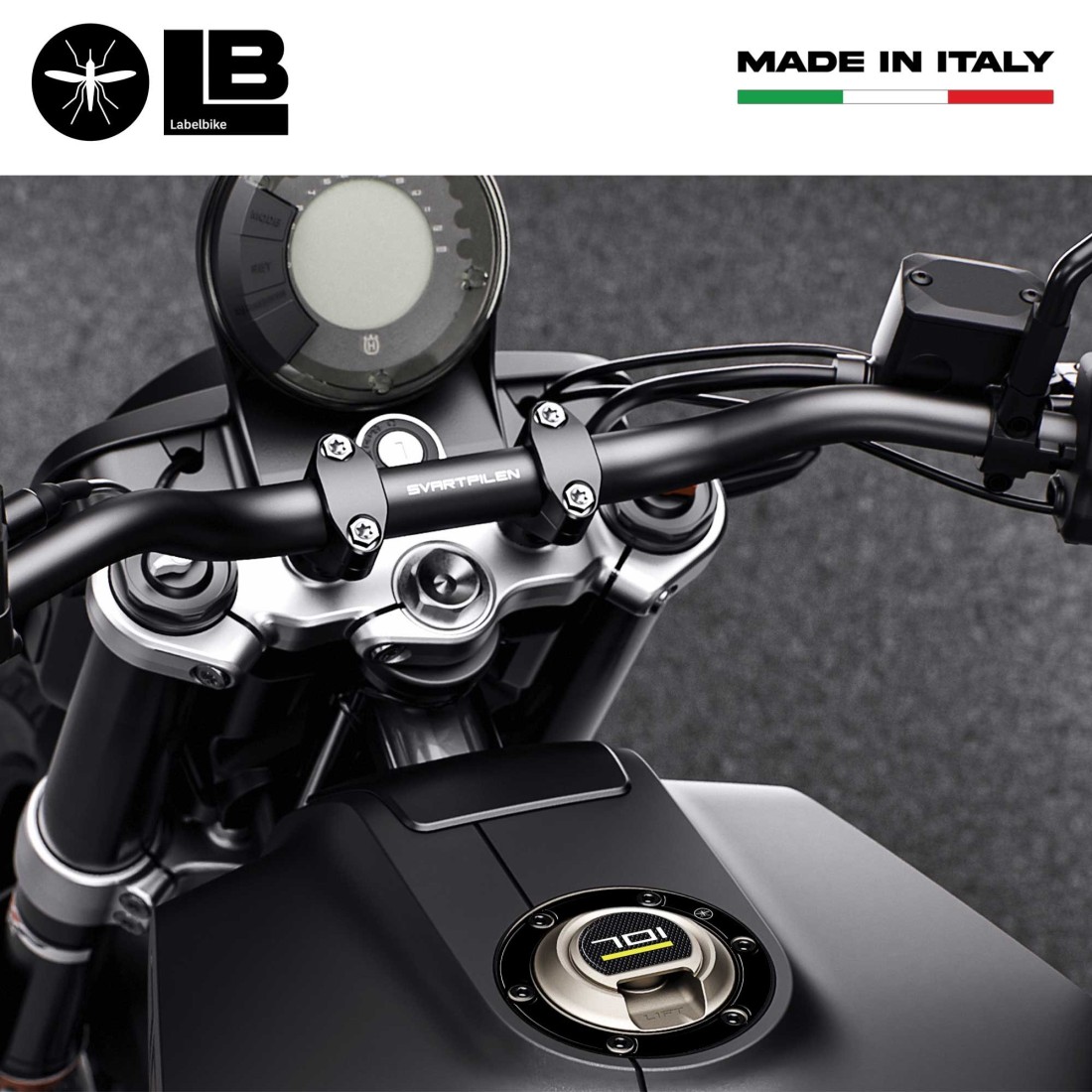 3D fuel tank cap protector compatible with Husqvarna Svartpilen and Vitpilen 701 motorbikes 2019 - 2020. Resin stickers to protect and decorate the filler cap of your Husqvarna Naked bike. Adhesive protectors made of resin with non-slip carbon-like effect and 701 lettering.