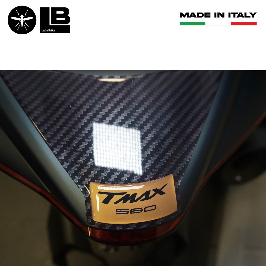 Adhesive protection for Tmax 2022-2025 scooter tail area and Tech Max version. Graphics in 6 colour variations and Tmax lettering. Resin 3D effect stickers, Exclusive Labelbike MADE IN ITALY.