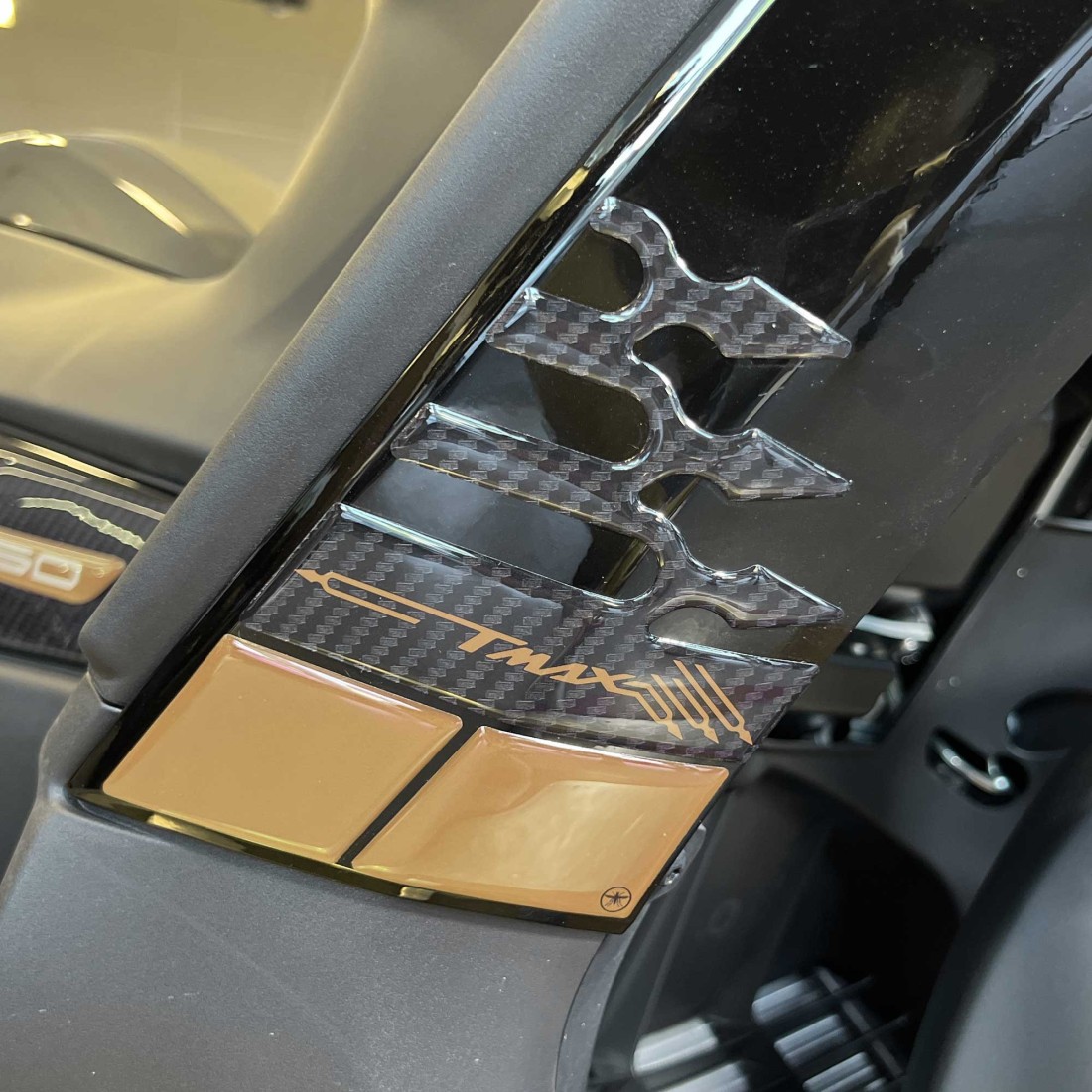 • Stickers for T Max side panels 2022-23. 3D resin protectors for side fairings Yamaha Tmax 560 2022-2023