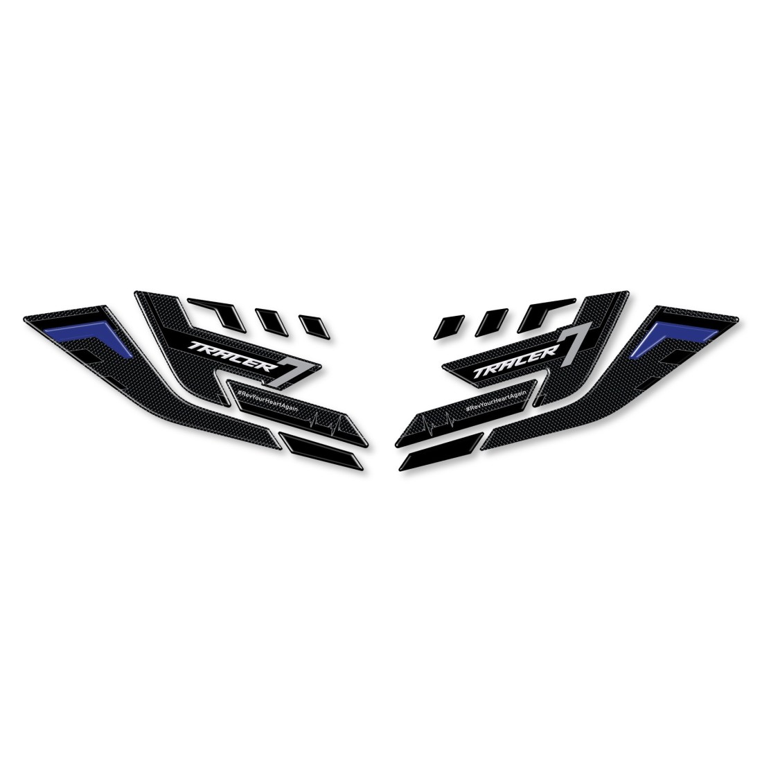 Adhesive resin protectors for Yamaha Tracer 7 2021 - 2024 motorbike handguards. Two 3D gel resin stickers Exclusive - Labelbike. Adhesives for handguards MADE IN ITALY made in resin with 3D effect. Graphics in Blue, Grey or Red with Carbon Look base.
