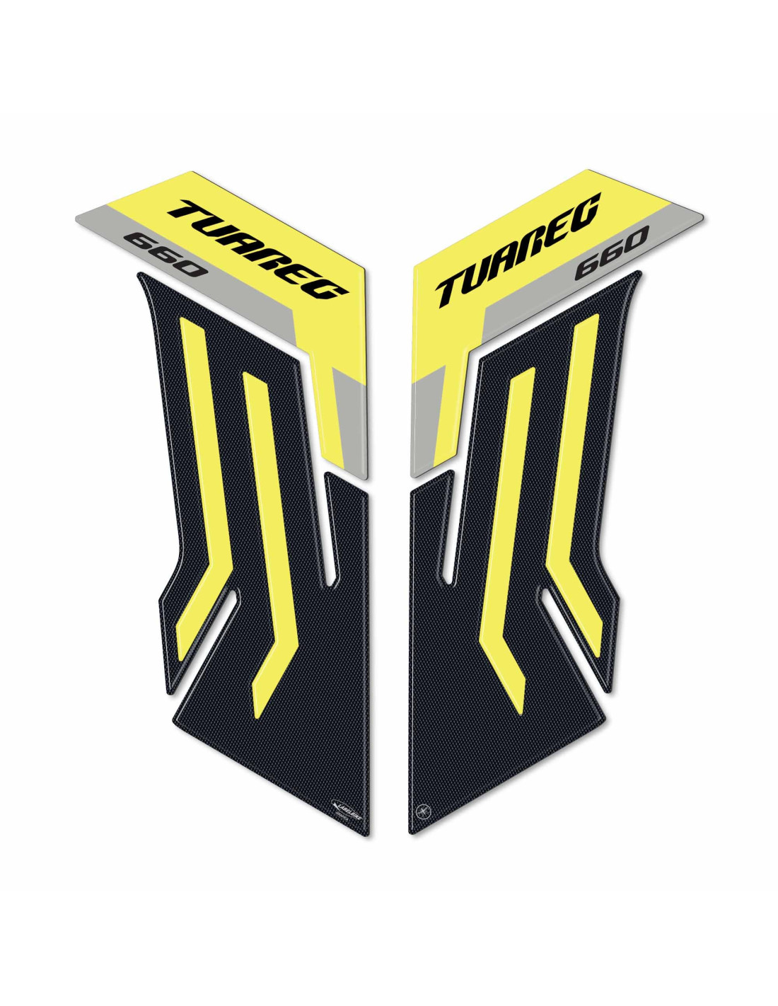 Pair of stickers (in Non-slip/Yellow or Non-slip/Red effect) made of 3D resin compatible with Aprilia Tuareg 660 motorbike tank 2022-2025