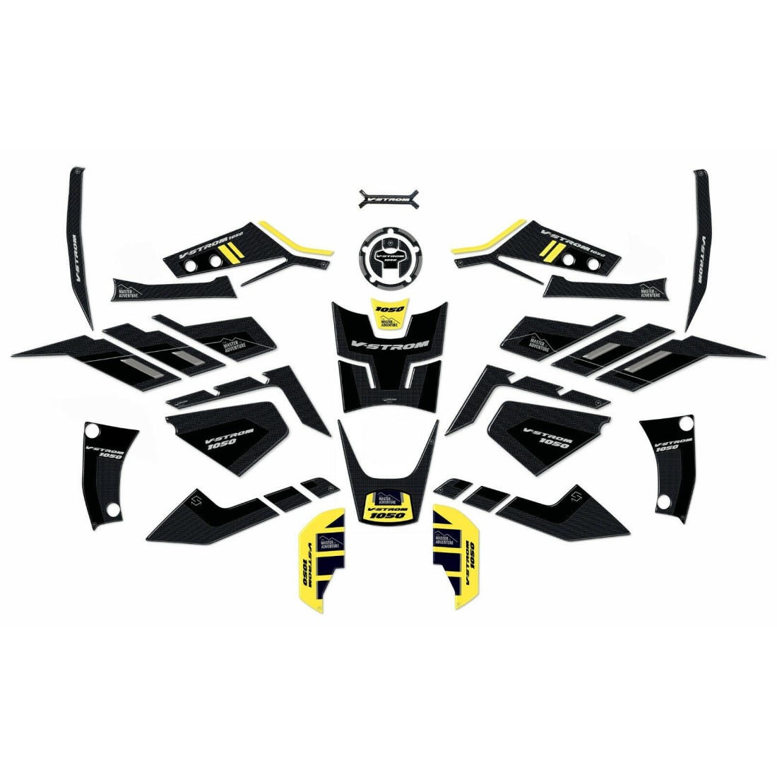 - Complete kit of 3D resin-coated protective stickers for Suzuki V-Strom 1050 motorbikes