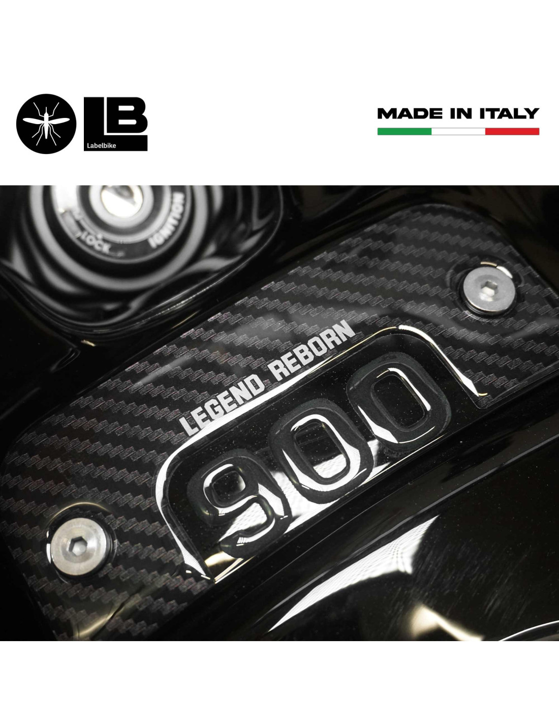 Adhesive 3D protection sticker compatible with Yamaha XSR900 2022-2023 ignition key zone. Resin adhesive to protect and decorate your XSR900. Adhesive for XSR 900 3D effect, glossy surface, for ignition key area from 2022 to 2023, made of resin with carbon effect base and XSR900 Legend Reborn lettering.