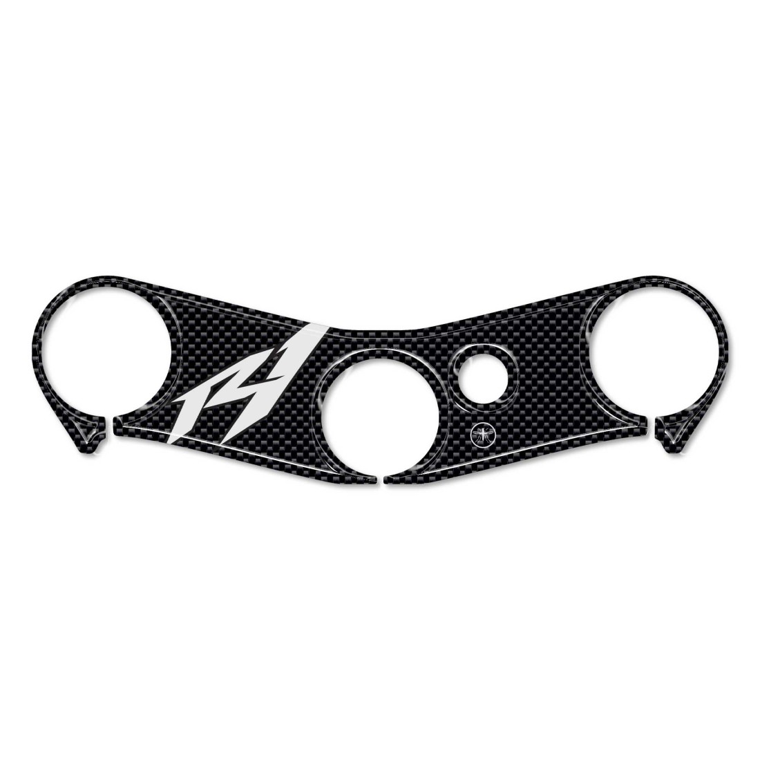 RESIN ADHESIVE for MOTORCYCLE Protection Fork Plate ADHESIVES / STICKERS COMPATIBLE for YAMAHA R1 2002-2003 in imitation Carbon with grey R1 logo EXCLUSIVE - LABELBIKE Resistant to atmospheric agents and UV rays.