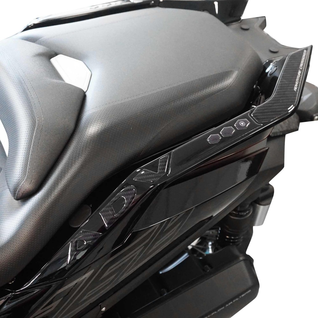 3D adhesive protectors compatible with Zontes 368 G (2025). Resin adhesive to protect and decorate the rear passenger handles without top case of your scooter. Resin adhesive graphics 3D effectglossy surface, scooter protection.