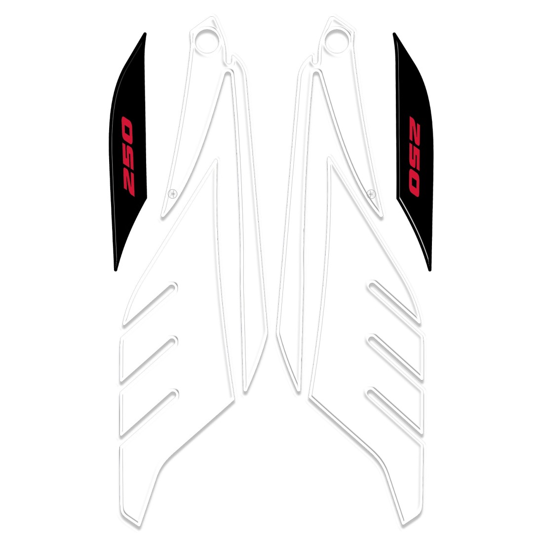 Coppia di adesivi per lato destro e sinistro zona laterale sottosella boomerang scooter. Adesivi resinati protezione scooter X Max 250 dal 2014 al 2016. Protegge la parte laterale dai graffi e trasforma il design del tuo Yamaha X-Max 250 rendendolo unico e spettacolare.