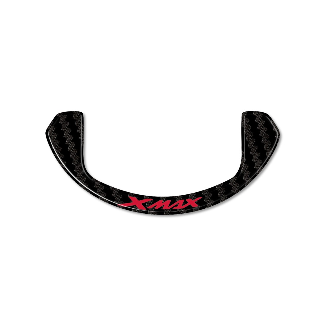 Protezioni adesive 3D compatibili con Maxi Scooter Yamaha X Max 2017 - 2022. Adesivo resinato per proteggere e decorare la zona accensione del tuo Xmax 300. Protezione adesiva con effetto 3D, superficie lucida, per supporto cupolino parabrezza 2017-2022 Xmax 300, realizzata in resina con base Carbon Look (simil carbonio) e scritta XMAX.