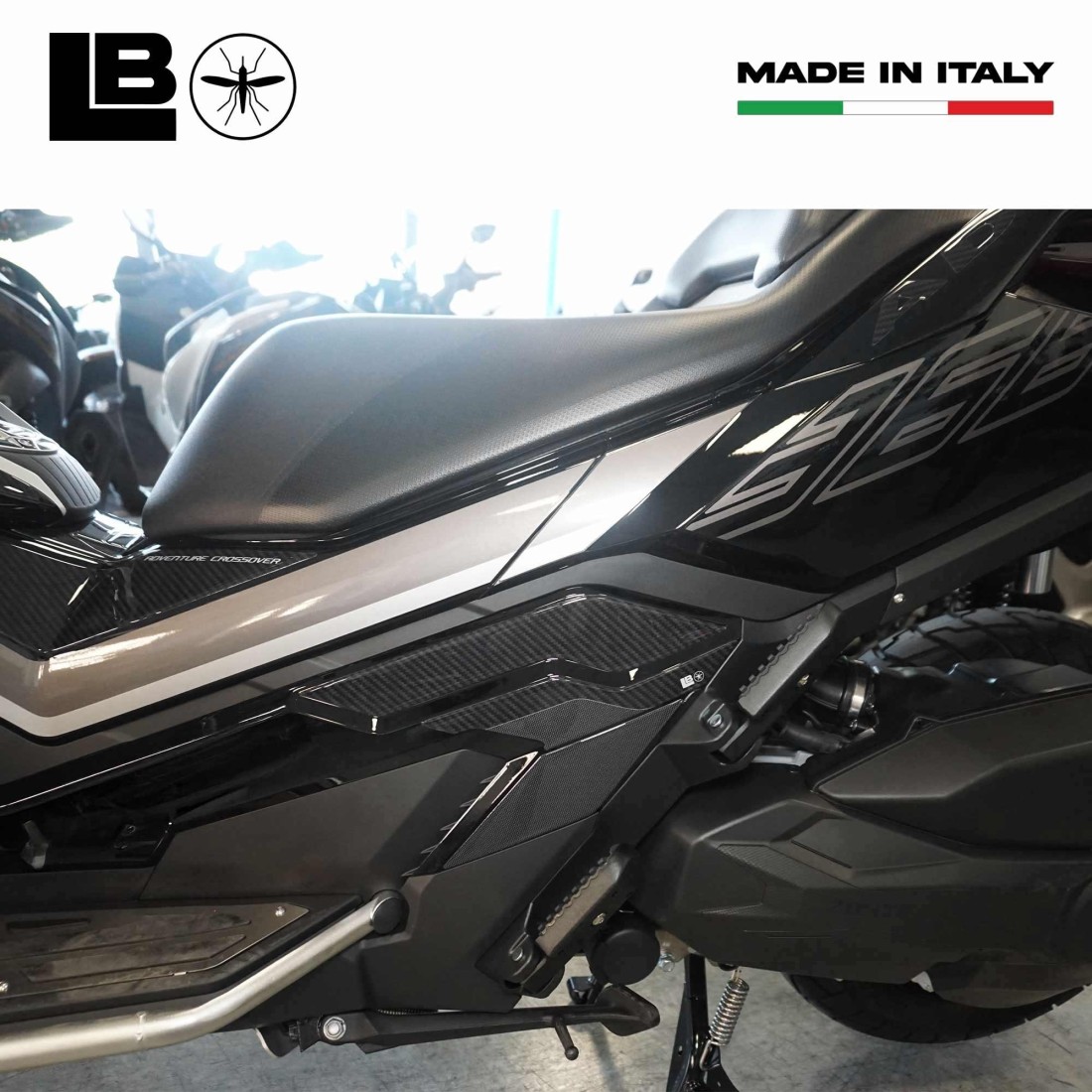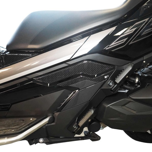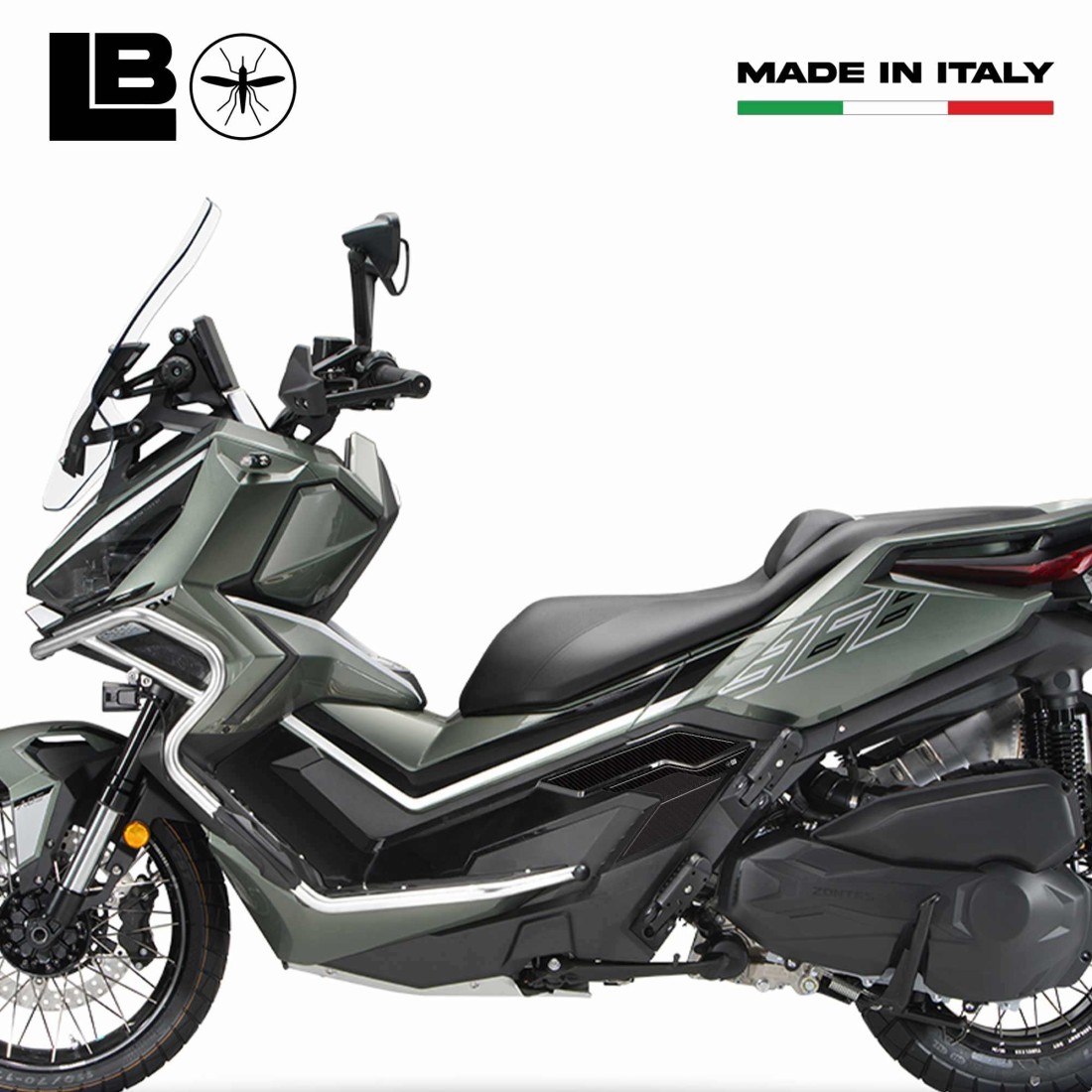 Protezioni adesive 3D compatibili con Zontes 368 G (2025). Adesivo resinato per proteggere e decorare la zona laterale Pedane passeggero del tuo Scooter. Grafiche adesive resinate effetto 3D, superficie lucida, di protezione scooter.